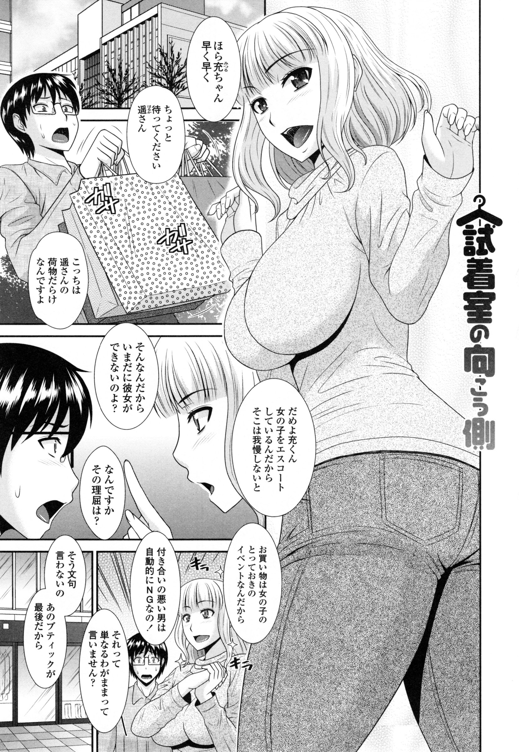 【和姦同人誌・漫画】試着室でという絵の幼馴染のお尻が魅力的だったので、ついチンポを取り出して・・・