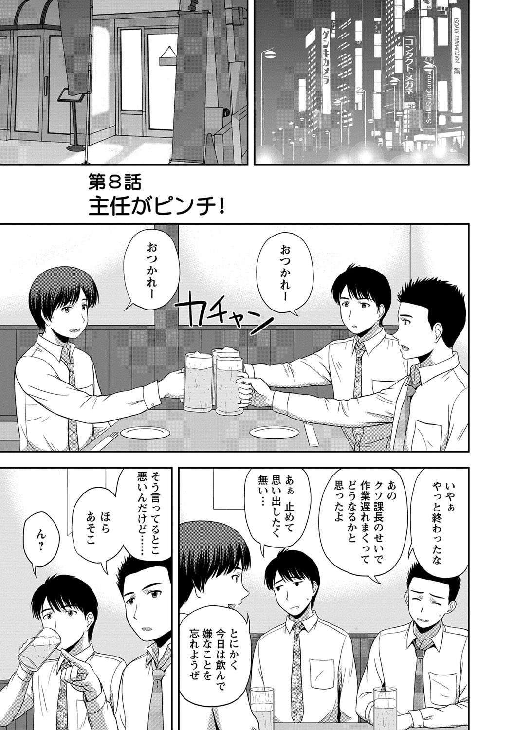 【和姦同人誌・漫画】自分の好きな会社の上司が課長にセクハラされていたので、課長を撃退してそのまま夜の街に消える・・・